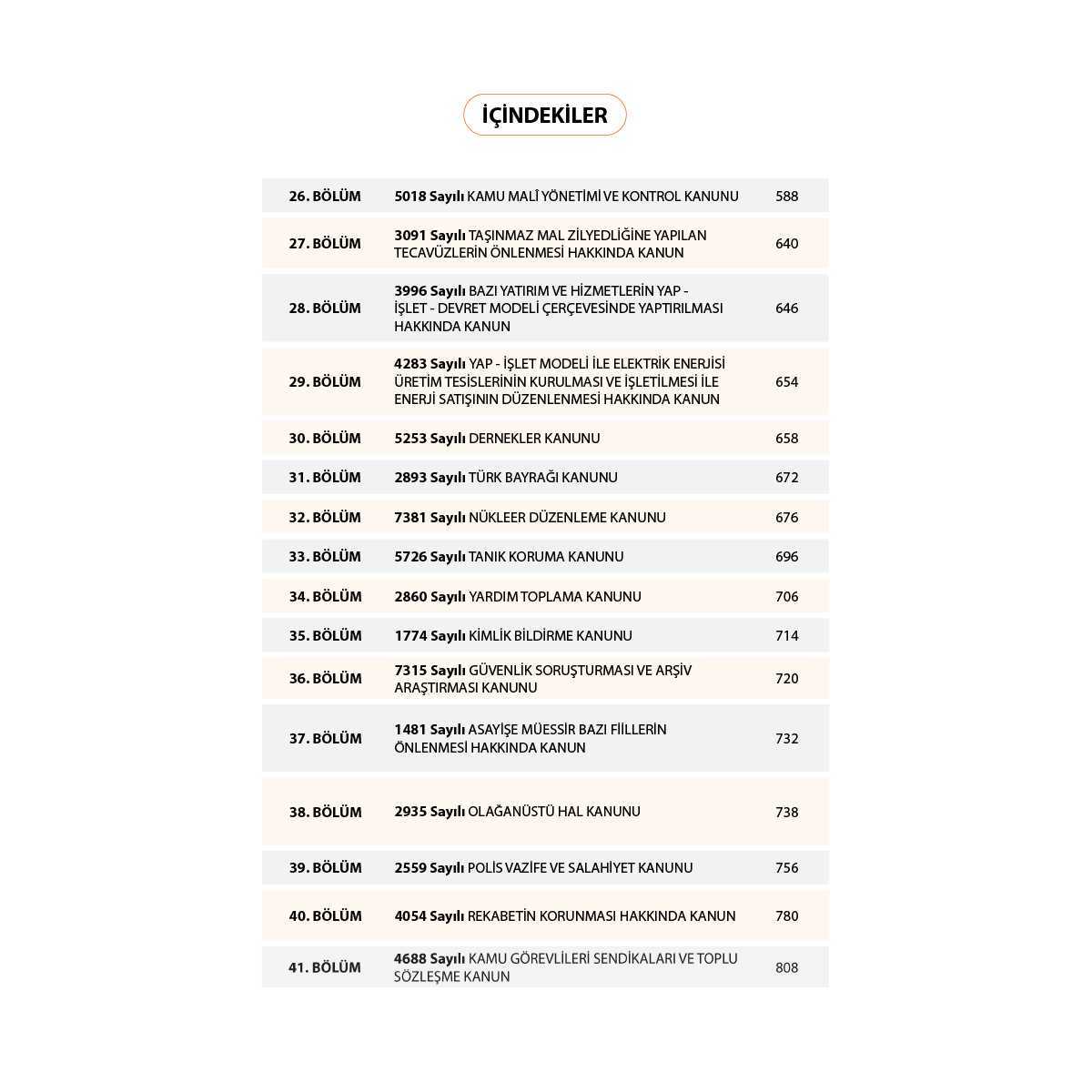 Kitaplar aşağıdaki bölümlerden oluşmaktadır: