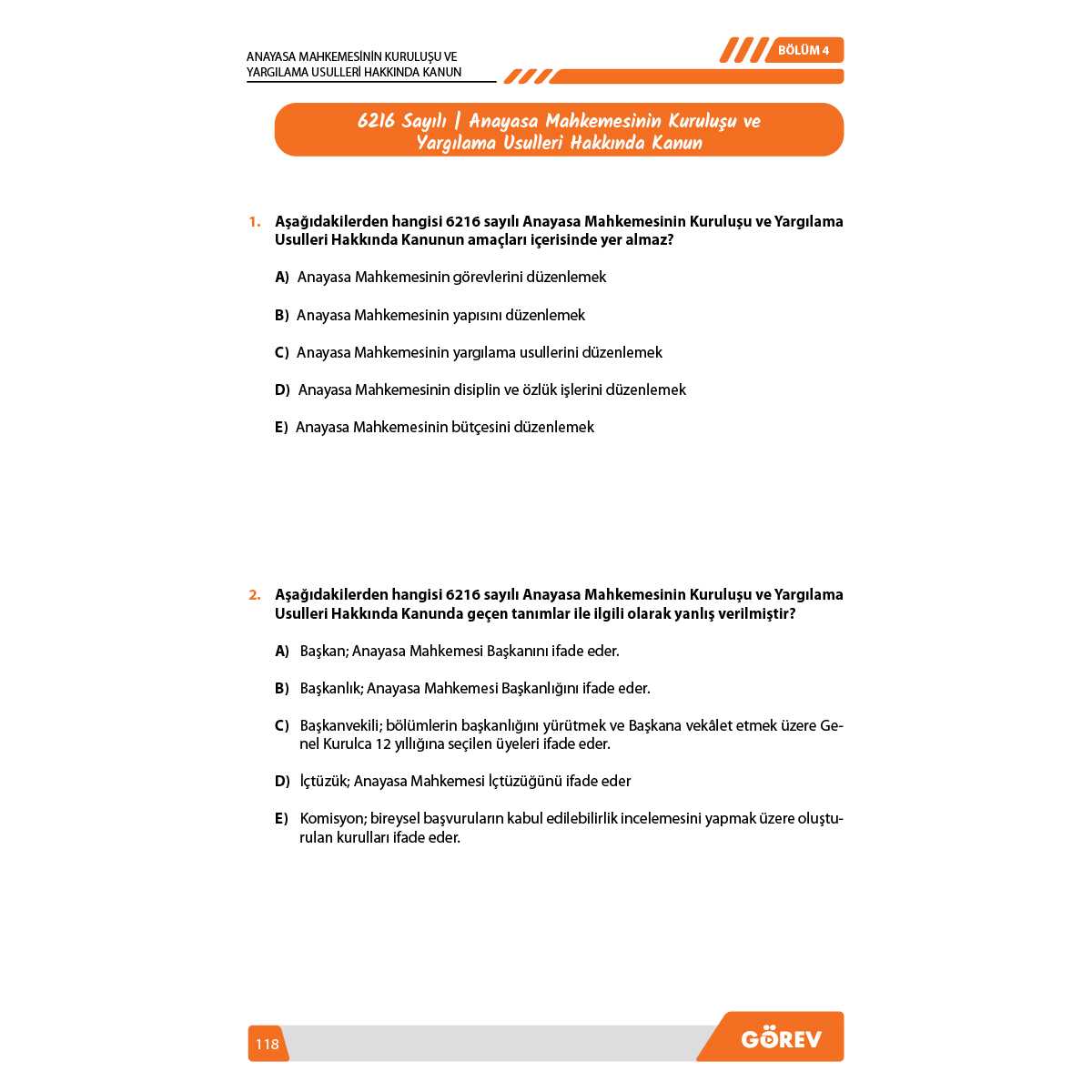 HÖ Soru Bankası aşağıdaki bölümlerden oluşmaktadır: