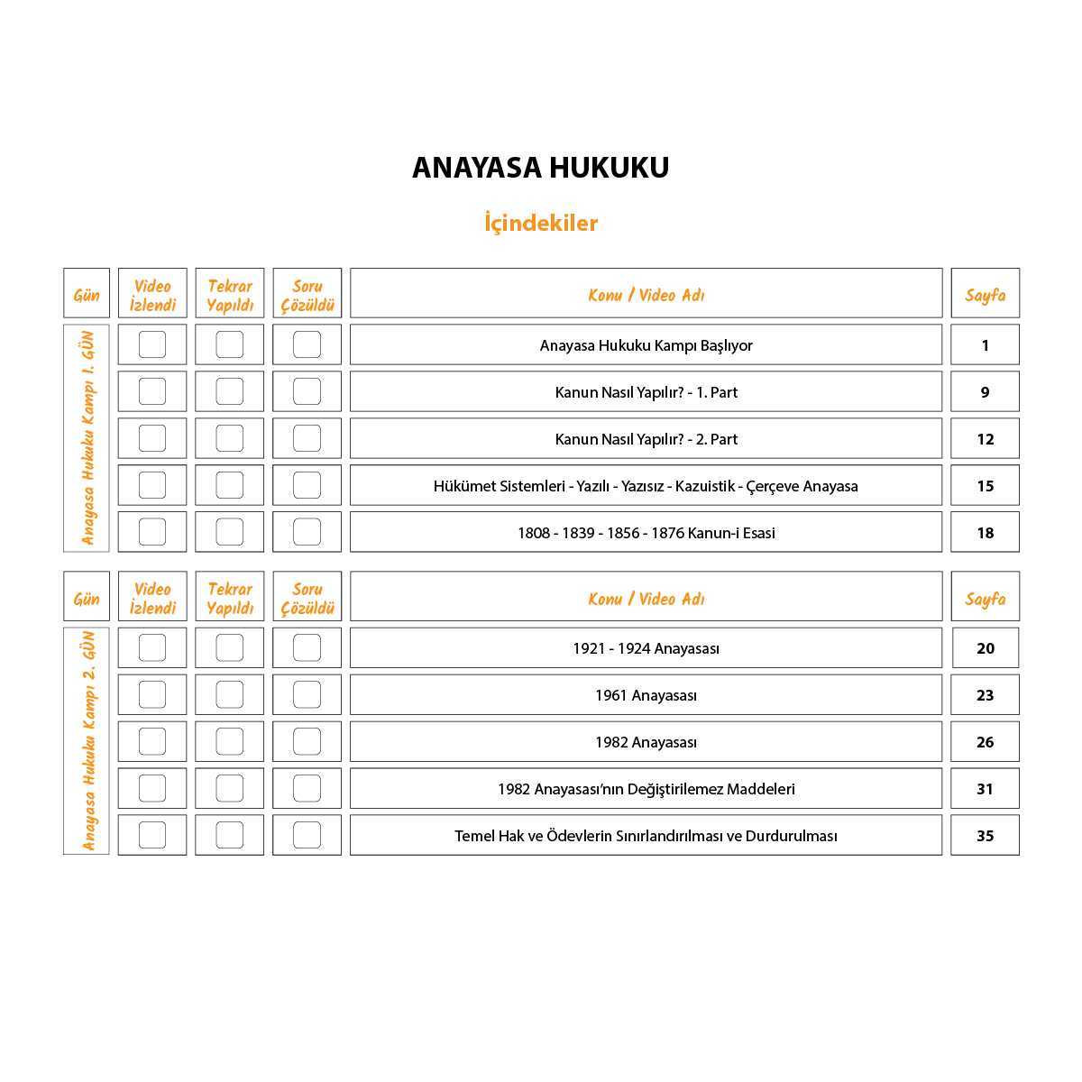 👉 Günde 5 video ile 8 gün boyunca toplam 40 video izleyerek Anayasa Hukuku”nu eksiksiz tamamlayacaksınız.