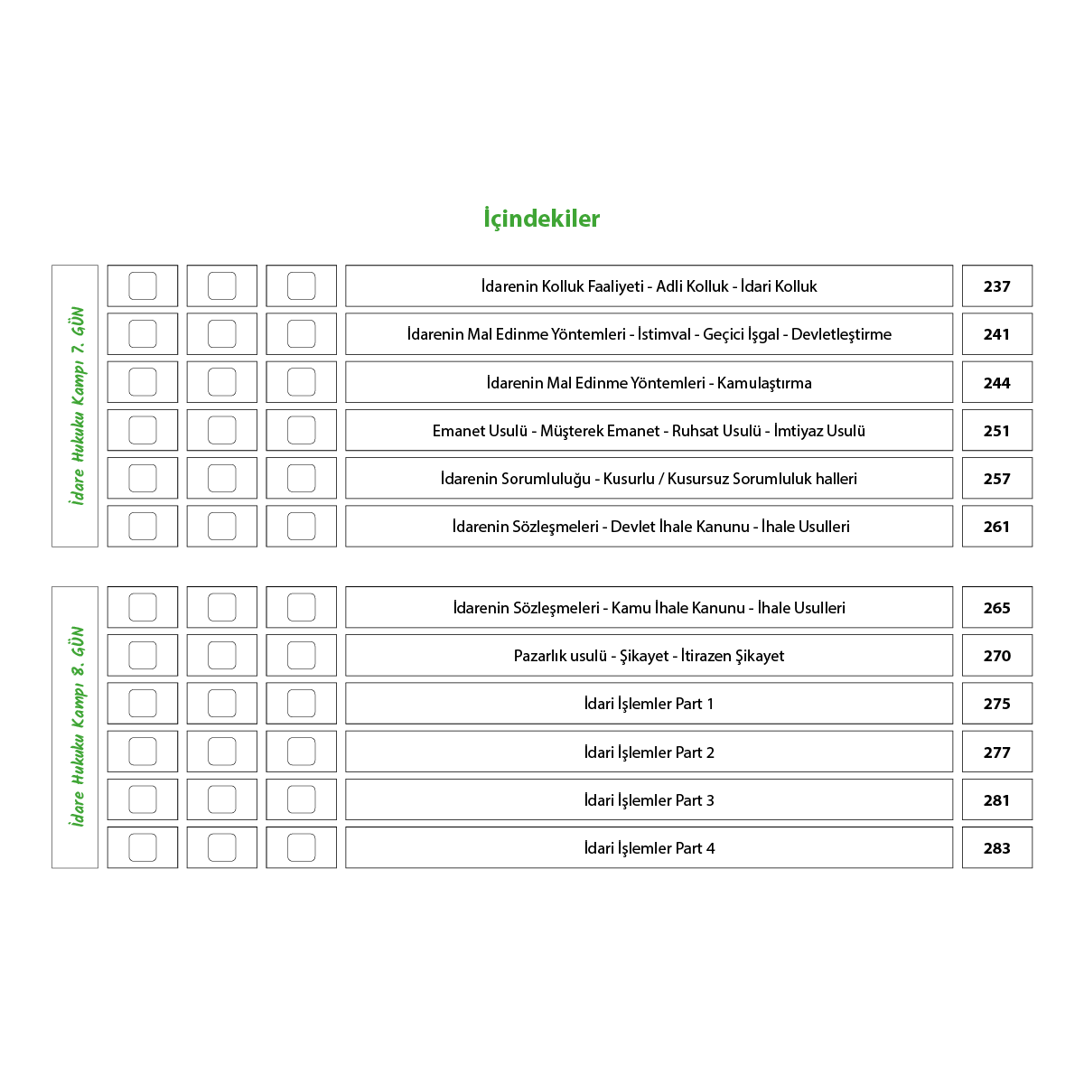 İdare Hukuku Kamp Kitabı aşağıdaki bölümlerden oluşmaktadır: