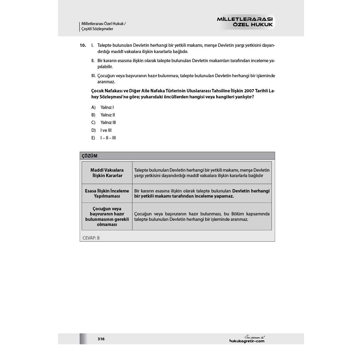 MİLLETLERARASI HUKUK VE MİLLETLERARASI ÖZEL HUKUKU SORU BANKASI